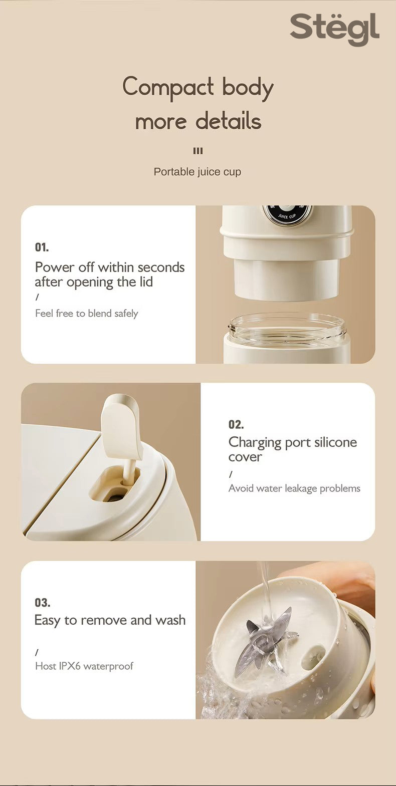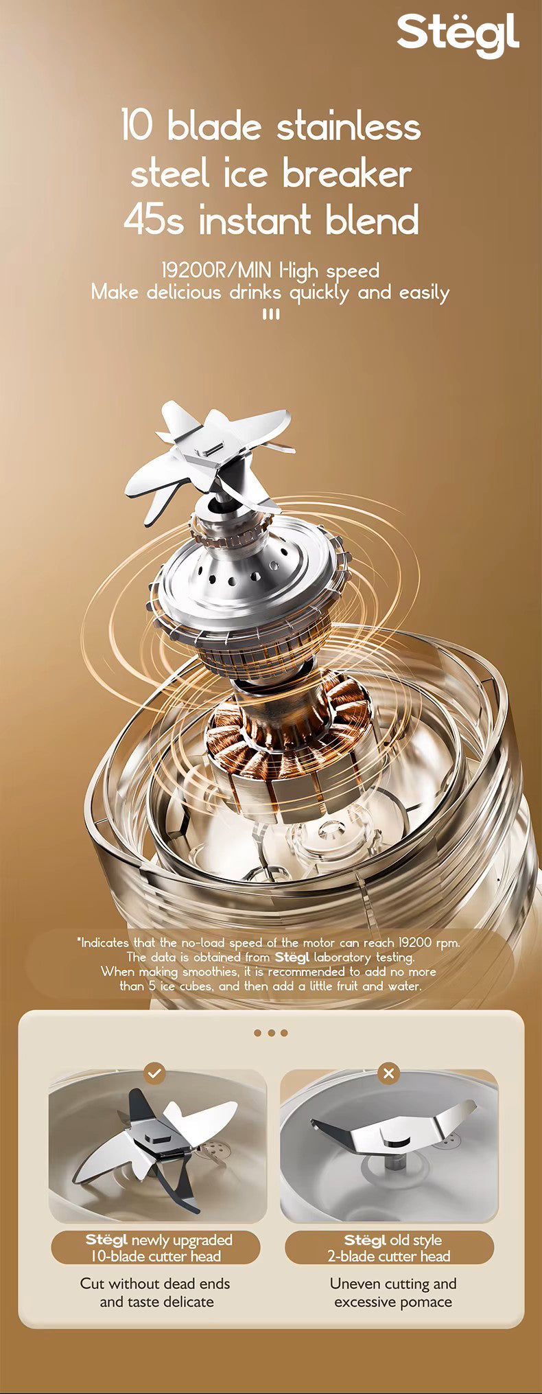 Experience the elegance of convenience with the Stegl Blendjet, a superfast portable blender designed for those who value efficiency and style. Its powerful motor effortlessly blends your favorite ingredients on the go, delivering smooth, nutritious results in seconds. Compact and sleek, it fits seamlessly into your lifestyle, making healthy living both accessible and sophisticated wherever you are.